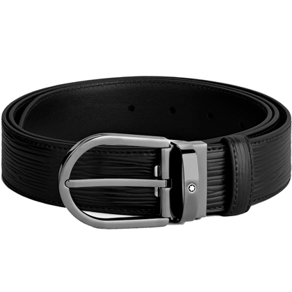 Черный кожаный ремень с подковообразной пряжкой 35мм от магазина премиальных ручек Premium Pens в Уфе.