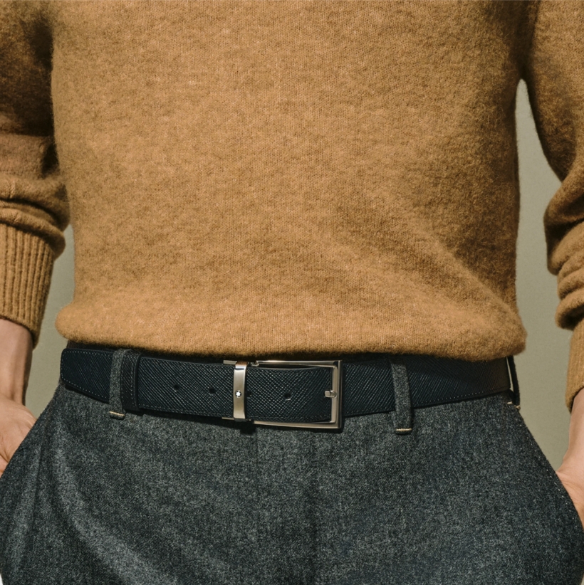 Двухсторонний мужской ремень Montblanc: кожа черного и коричневого цвета 35 мм от магазина премиальных ручек Premium Pens в Уфе.
