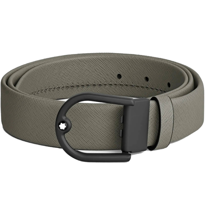 Кожаный ремень 35 мм из кожи серого цвета, пряжка в форме подковы от магазина премиальных ручек Premium Pens в Уфе.